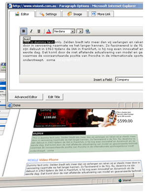 Simply choose from a selection of templates then click and replace your pictures, content, background colours and links as required. Custom brochures can also be created using the WYSIWYG or 'What You See is What You Get' editor.